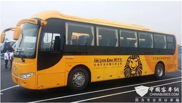 “狮子王”上海迪士尼专线大巴 据统计,G20工作组会议期间,金龙客车每天早上运行约138个班次,往返于会场与酒店之间,输送人数总计达7000次。