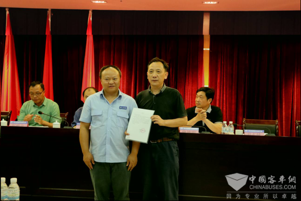 会议中,恒通客车两化融合最高管理者何总向重庆市经济信息委递交恒通客车两化融合管理体系贯标承诺书。