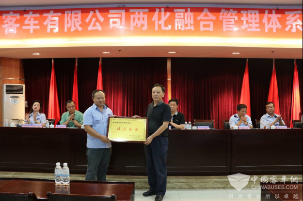 重庆市经济信息委易小献处长为恒通客车授予“两化融合管理体系贯标试点企业”荣誉。