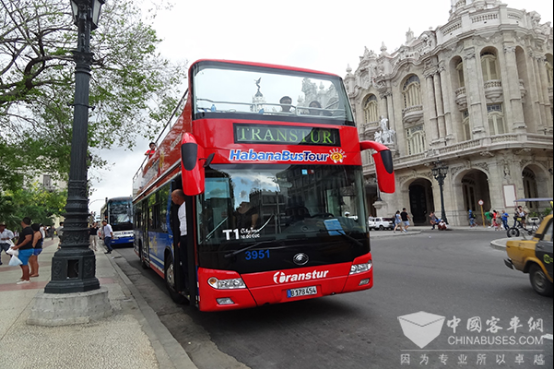 哈瓦那街头的宇通双层观光巴士