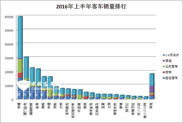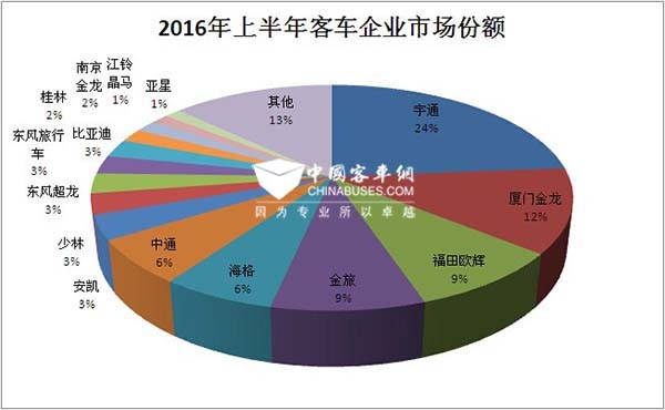 总结:2016年上半年客车销量与2015年比同比下降明显,与2016年上半年不明朗的政策环境有一定的关系。主流企业占据主要市场的格局仍未改变。