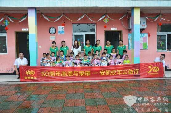 2016年,安凯客车再次将关爱升级,发起“50周年感恩与荣耀——安凯校车公益行”活动,将目光锁定在我国经济欠发达、道路交通不便、物资贫乏的贫困地区,活动范围也涵盖了全国大部分省市。目前,安凯校车公益行活动已经在江西、河南、安徽、湖北、广东等地陆续开展,总行程达到一万多公里。
