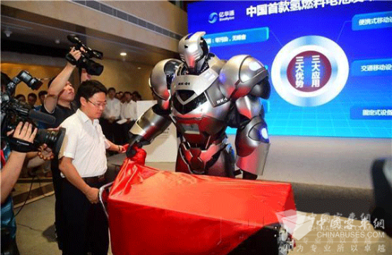 2016年7月23日,由北京市海淀区人民政府、北京市经信委、中关村科技园区管委会主办,以“众志、众智、众制”为主题的中关村国际创新周暨中关村智造大街启动仪式在京举行。仪式上,智造未来载人机甲NK-01揭幕了中关村国际创新周首件展品——由亿华通研发并装配在福田欧辉氢燃料电池客车上的全国首款商用氢燃料电池发动机。有行业人士向完美作业网有免费视频表示,氢能与客车的组合是产业创新与转型的有机结合,象征着新能源城市客车的未来。