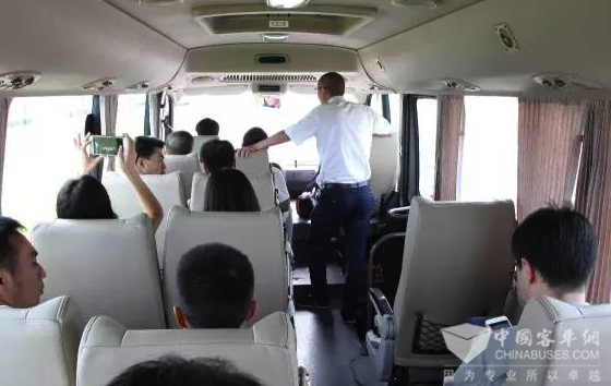 流行的银色金属漆和镀铬两条的搭配,让前散热器格栅,明亮大气。宽大的保险杠配以明亮的大灯让人觉得张力十足。流线型造型的前脸、原装进口CSC门、进行了镀铬处理的轿车化门把手配置,让人感觉大气从容,既厚重又有层次感。开上这样的一辆中巴车进行商旅接待,主人有面客人也觉得尊贵十足。