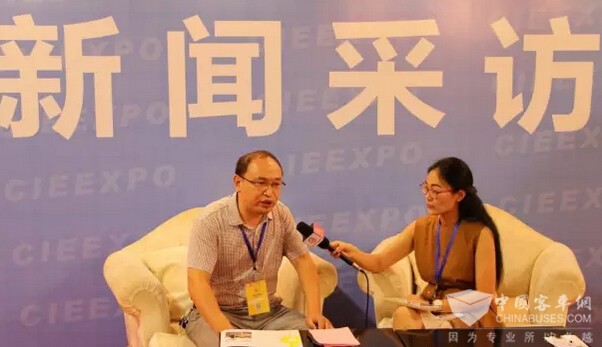 中通客车校车销售经理张宝琪接受媒体采访