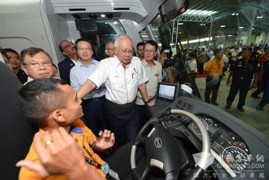 电动BRT公交司机向马来西亚总理兴奋地介绍比亚迪电动大巴