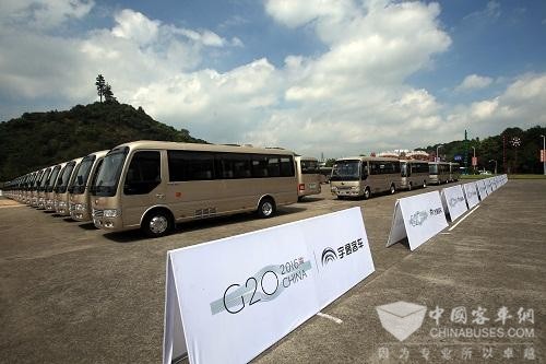 等待出口的宇通客车