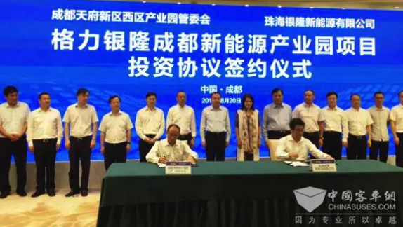 2016年8月20日上午,格力银隆成都新能源产业园项目投资协议签约仪式在成都天府新城会议中心成功举行。成都市委书记、市长唐良智,格力电器董事长兼总裁董明珠,银隆集团董事长魏银仓出席并见证签约仪式。会上,银隆集团常务副总裁敖建华与成都天府新区西区产业园管委会(新津县委常委、副县长)左正洪签订合作协议书。