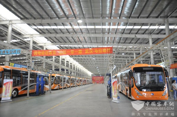 2016年6月,在“中国中部国际产能合作论坛暨企业对接洽谈会”上摩洛哥马拉喀什市购买35辆扬子江新能源公交车以及后期运营、管理等配套服务。8月23日,首批15台12米威龙G92纯电动在线充城市客车正式交付,即将通过海运出口摩洛哥。