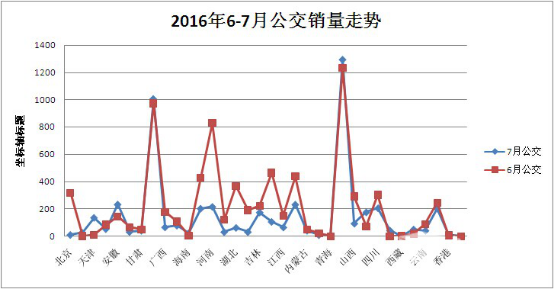 二、2016年6-7月地区公交销量走势: