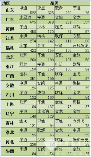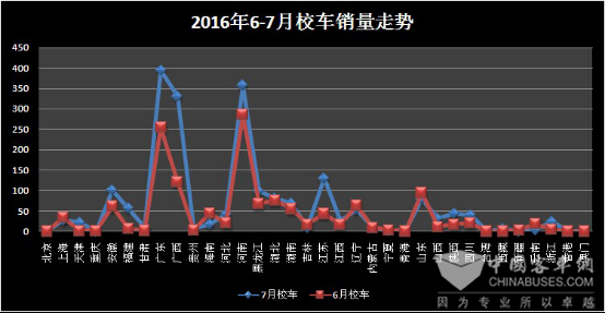 由上图看出,2016年7月份,部分地区校车销量较6月份有明显增加,校车市场仍有巨大潜力。