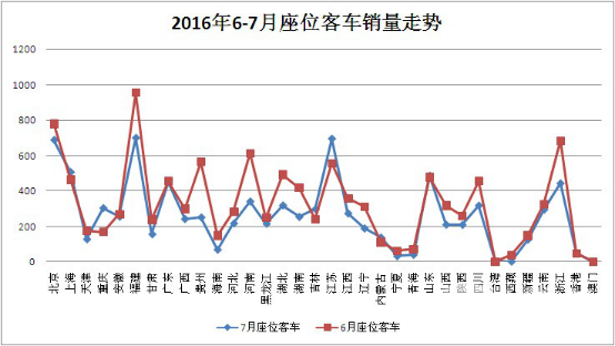 由上图看出,2016年7月,客运客车与6月相比,大部分地区下降明显。与2016年7月整体市场大环境有一定关系。