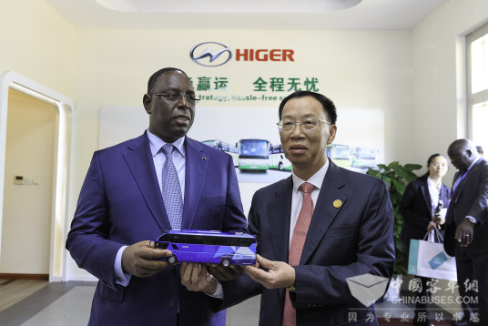 苏州金龙总经理黄书平陪同塞内加尔总统萨勒体验海格客车