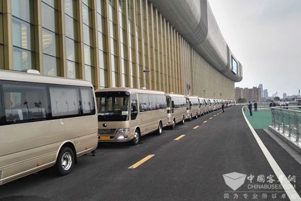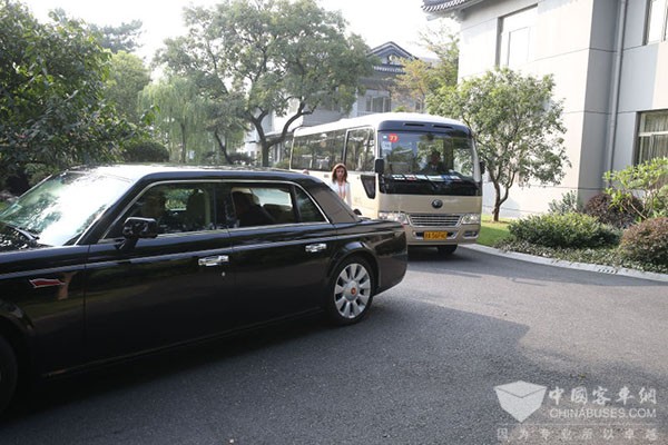 服务此次G20的车型很多,但能够像宇通T7这样如此近距离地直接服务参会众多国家领导人出行,并不多见。除了接机时的频频抢镜,在与会领导人车队陆续抵达G20主会场的过程中,处于车队核心位置的宇通T7又不断映入人们的眼帘,尽显威武大气。
