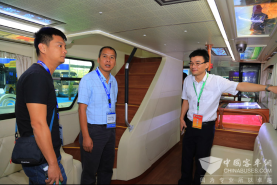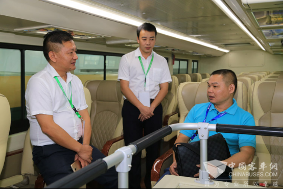 营销一部副总经理杜荣生为客户现场讲解客车性能品质