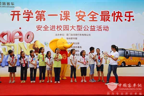 王立志说,厦门金旅是一家国有客车制造企业,长期关注儿童安全问题,多次举办这样的公益活动。厦门市湖里区育青学校是一所民办小学,拥有约1600名学生,他们大多是外来务工人员的子女,由于平常工作繁忙,他们中许多家长无暇照顾小孩,因此选择在这里举办一场安全教育进校园活动具有更加特别的意义。