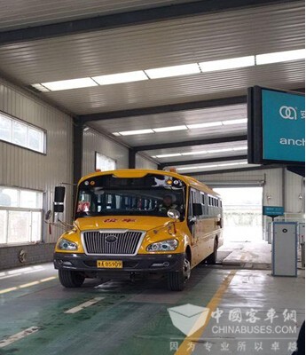 张成斌介绍校车的检测也比一般车辆要求更严格,检测项目多达108项,而且每半年就要检测一次。经过历城交警大队的协调,位于旅游路上的济南君冠检测线公司总经理王宇决定为校车贡献一份力。