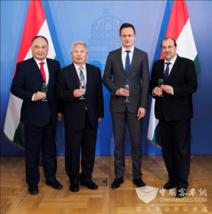 比亚迪欧洲分公司总经理何一鹏、中国驻匈牙利大使段洁龙、匈牙利外交与对外经济部部长Peter Szijjártó及科马罗姆市长Attila Molnar出席活动并发表讲话