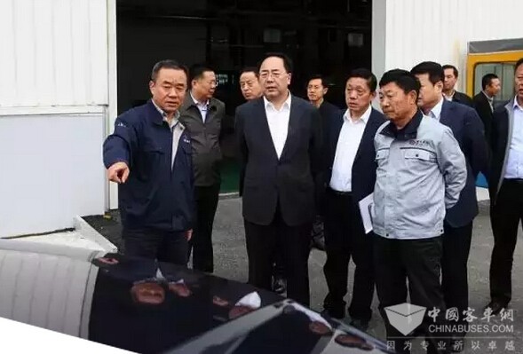 2016年10月10日下午,市委书记刘兴伟一行来到曙光汽车集团黄海新能源基地调研,在曙光汽车集团董事长李进巅亲自陪同下,先后深入新能源基地崭新的“焊装、涂装、总装”车间详细参观了解生产运行情况。并参观了黄海新能源基地刚刚生产完成的崭新的135台丹东黄海气电混合动力新能源公交,以及包含黄海客车、校车、皮卡、瑞途、特种车等在内的黄海全系列产品,特别是听到黄海皮卡刚刚取得的中国移动千台产品大单情况汇报后,对曙光汽车集团的经营发展给予了极大的鼓励。