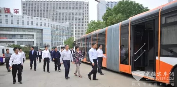 王市长在观看和体验扬子江超轻一号G9纯电动汽车、常温常压氢燃料纯电动汽车时,对扬子江汽车集团的新能源汽车超轻量化创新技术、氢燃料储能技术及成果,连声说好!对扬子江超级精灵6米微循环纯电动公交车的小巧灵活和运营性能,以及解决城市公交服务盲区的特性,作了详细了解,他说,开发这样的微循环纯电动公交非常贴合现在城市公交市场的需求,很好地解决了市民“最后一公里”出行问题,对这种服务市场的思路给予高度肯定。