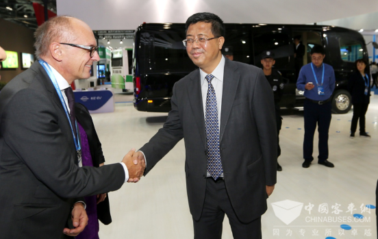 工信部部长苗圩(右二)莅临长江EV展台参观指导