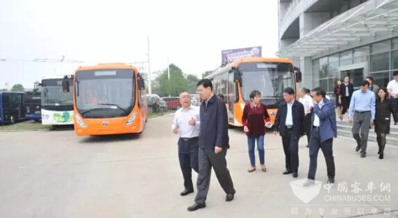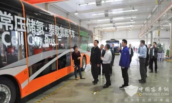 2016年10月19日上午,武汉市市委副书记陈瑞峰到访扬子江汽车进行调研考察,在新能源车间详细的了解超轻一号G9和威龙G5泰歌号常温常压氢燃料电池车。