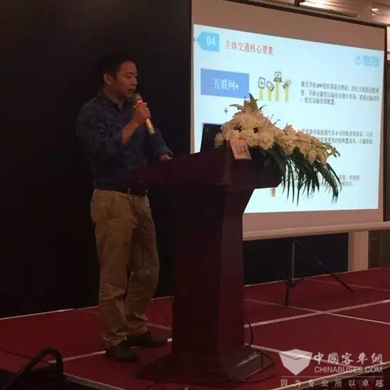 论坛期间,金华青年智慧汽车有限公司副总经理刘中来作了青年新能源车辆整体解决方案的介绍。刘中来从三方面介绍了青年汽车新能源整体解决方案:公交电动化解决方案;互联网立体交通方案;配套能源项目。