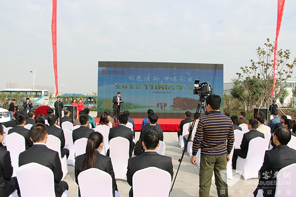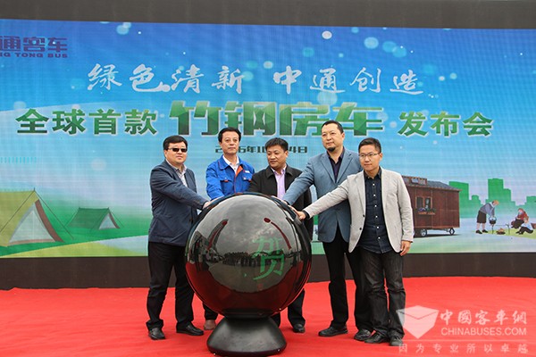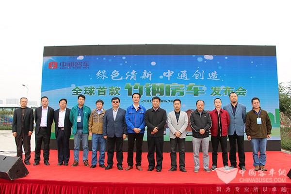 2016年10月24日,来自中国汽车工业协会房车委、山东省及聊城市旅游局、山东省房车与露营与自驾旅游协会以及各大合作伙伴、媒体在内的嘉宾齐聚中通客车厂区,共同参加中通客车全球首款竹钢房车发布会。