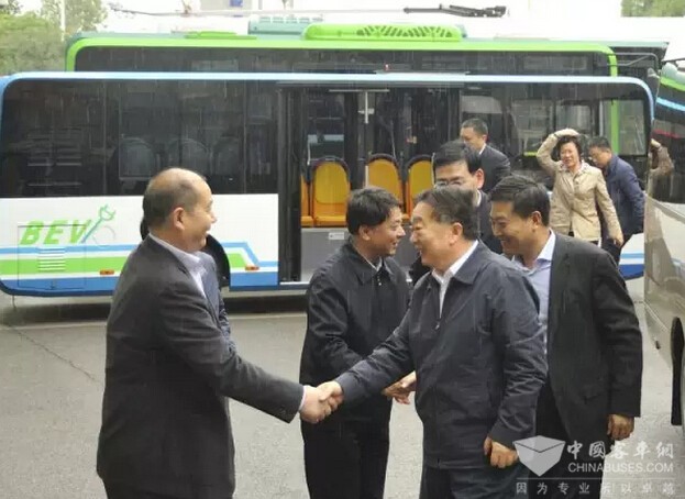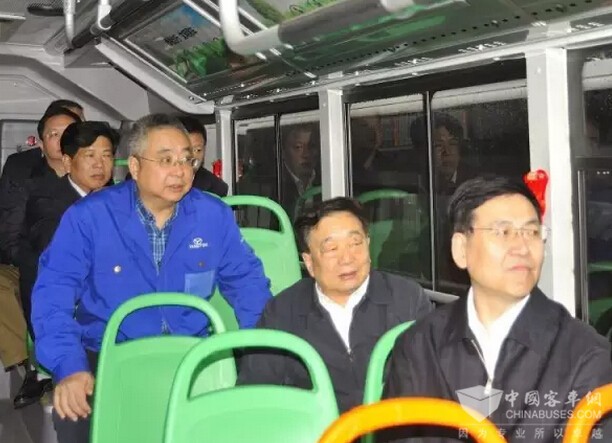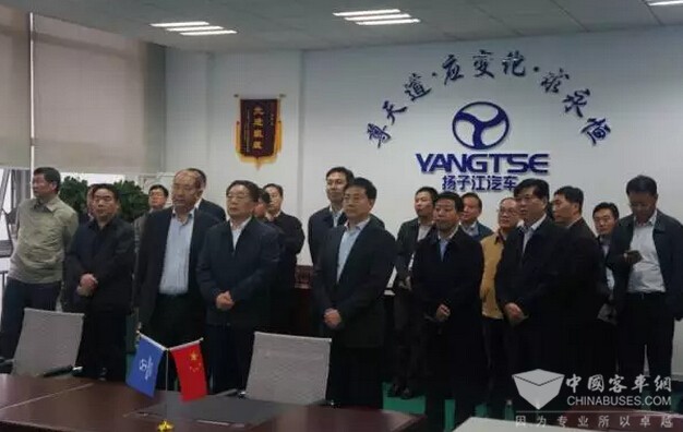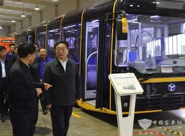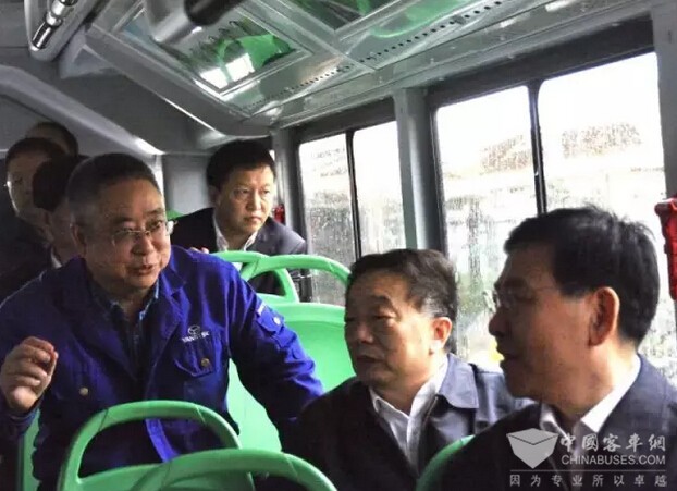 扬子江汽车集团董事长吴天才、董事黄文芳、总经理黄修瑞在公司大门前迎接。李亚、刘宛康等领导体验了扬子江纯电动在线充公交车,参观了扬子江新能源汽车监控中心、新能源车间和扬子江超轻一号G9超轻量化纯电动公交车,对扬子江汽车在新能源方面的技术创新,工艺创新给予了高度赞扬。