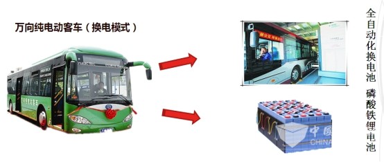 万向纯电动客车:杭州公交目前在用分两批,第一批100辆采用换电模式,配备100KW交流电机,车辆的动力电池为磷酸铁锂电池,整车电池电压576V,电池能量172千瓦/时,目前100辆换电模式纯电动客车在3条线路上运营,一组电池平均可行驶里程100公里左右,换电模式具有换电时间快,但行驶里程短,营运成本高,在使用上有较大的局限性,目前共运行406万公里。