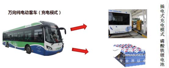万向纯电动客车:第二批220辆采用充电模式,配备100KW交流电机,车辆的动力电池为磷酸铁锂电池,整车电池电压540V,电池能量324千瓦/时,在10余条主城区公交线路上运营,目前总运行293万公里,平均日行驶里程为180公里左右,充电时间在3-4个小时左右,平均电耗每百公里在107度左右,故障为1.38%,远低于常规公交车。