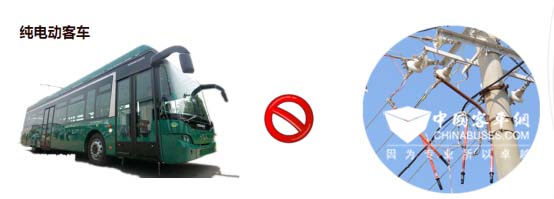 “即充式”纯电动客车:即充式纯电动客车在传统无轨电车的平台上,融入了纯电动车的元素。其电机、电控、电池等配置与纯电动车完全相同,在行驶途中,既可以像无轨电车一样利用架空线网一边行驶一边快速充电,又可以像纯电动车一样无需线网运行20公里以上,大大减少了无轨电车对充换电配套设施的依赖度,同比纯电动车整车质量大幅下降,进一步提升了无轨电车的机动性。同时,车载电池通过浅充浅放,寿命更长。与普通柴油公交车相比,具有启动平稳,噪音小,零污染、零排放的特点;与无轨电车相比,不再过分依赖线网,在线和离线运行模式均能有效应对城市不同线路。即充式纯电动客车采用100KW交流电机,配置100Ah/DC410V锂电池储能系统(快拆模式),目前150辆即充式纯电动客车在杭州主城区4条公交线路上运营,最早一批即充式纯电动客车在2012年12月开始使用,现仍可保证脱辫行驶20公里以上,目前电池使用正常。