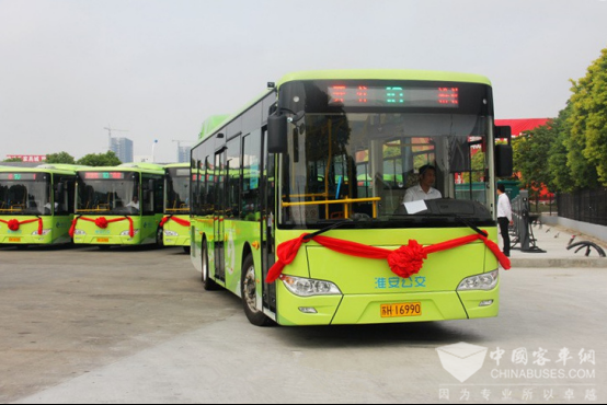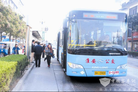 2016年1月1日,作为“民生工程”重大项目,淮安市完成公交国有化体制改革。重新组建的淮安公交以“环保、安全、智能”为思考点,新开通17条公交线路,优化9条公交线路,并对城区内传统动力客车进行“绿色替换”。2016年3月首批投入运营的100辆金龙纯电动客车,为当地民众出行带来了全新体验。本批300辆插电式混合动力客车,也将投放到城区主干线路上运营。