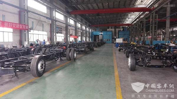进入厂区,映入眼帘蓝白相间的是已经完工的江苏的车辆,走进车间,还有部分车辆在紧锣密鼓地进行收尾工作;紧挨着正在进行内装工作的白底绿圈的是山西各县的车辆;继续行走,看到一辆辆绿色的车子,那是号称“牛郎织女 文化之乡”的车辆,已经完工,正在试车。据生产部部长管少蛟介绍说,准备车间现在正在制作的是山东的SR6101BEVG新能源公交的前期下料制件;底盘车间现在正在制作的是山西的SR6810BEVG新能源公交的底盘装配;焊装车间现在正在制作的是山东的SR6810BEVG新能源公交和东北的SR6706C4考斯特车的骨架焊接;油漆车间现在正在制作的是广西的SR6810BEVG新能源公交的车身喷涂工作;总装车间现在正在制作的是江苏和山西各县的SR6810BEVG新能源公交的内装及收尾工作。