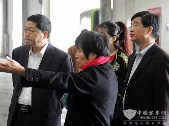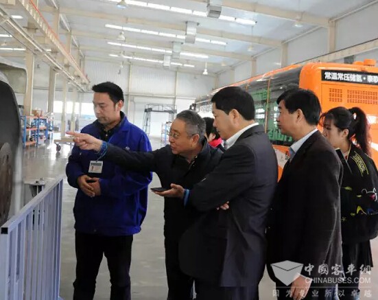 李正军一行观看扬子江“快干支微”系列新能源公交车