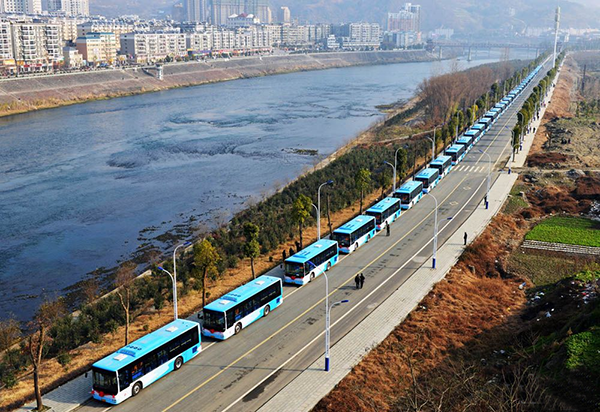 深藏在秦巴山中的竹山县,山大路险,道路崎岖,出行难成为限制全县经济发展和人们脱贫致富的难题。近几年,竹山城乡交通面貌发生翻天覆地的变化,城关到潘口电站一级路的建设和346国道改线工程的实施,极大地改善了竹山西部乡镇公路等级和路网服务水平,为开通公交创造了有利条件。为解决城乡群众出行“最后一公里”问题,构建城乡公交一体化的新格局,湖北十堰亨运集团投资2000余万元自厦门金旅购置43台豪华双温天然气(LNG)城市公交车,投入到竹山城关至擂鼓沿线城市公交班线,促进了竹山县域“城乡客运一体化”和“绿色环保客运”的发展。该条线路如今已成为全国农村交通运营示范线路。