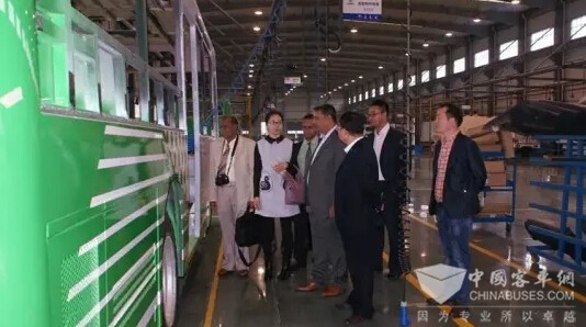 客人首先参观了焊装、涂装、总装、底盘车间生产线和产品检测线,了解安源客车生产制作流程和工艺。