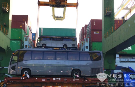 2016年11月17日22时,随着印巴航线“中远圣保罗”轮的缓缓驶出,福州港江阴港区顺利完成4辆大中型客车装船任务。这是江阴港区首次试水大中型客车出口业务,也是厦门金龙客车首次实现对巴基斯坦的整车出口业务。
