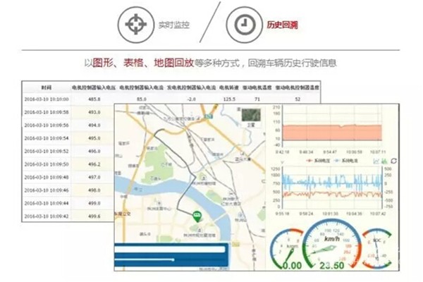 车辆远程故障报警机制为车辆运行时刻提供保障,异常预警机制和管理功能实时、不间断地自动采集BMS、电机、控制器、电池等状态数据,通过自动计算和分析,判断这些重要部件的安全状态,时刻避免安全事故的发生。
