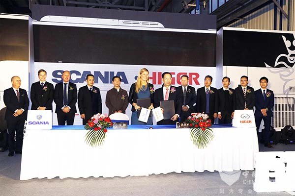 苏州金龙总经理黄书平与斯堪尼亚客车部高级副总裁卡琳现场签署深度合作协议