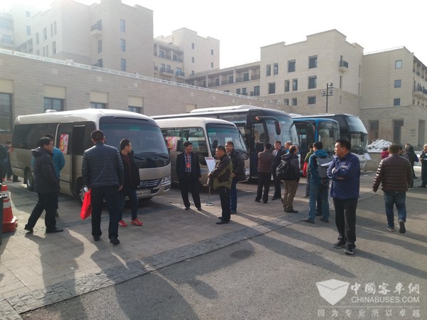 场外展区,安凯A6、A8、宝斯通K7悉数亮相,涵盖行业的各个市场与细分领域需求,全面展示安凯综合实力,为用户带来多种选择。
