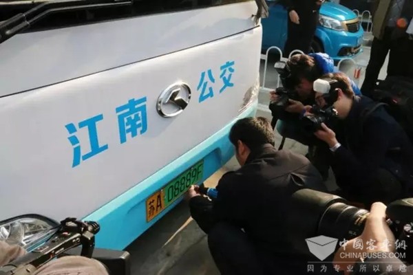 金龙气电混合动力客车摘得“头牌”收获南京首张新能源牌照