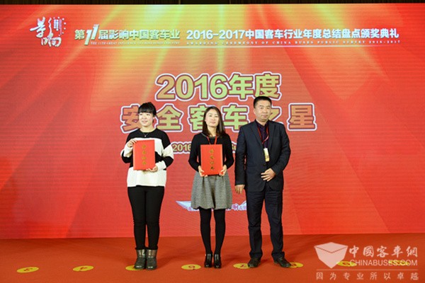 金龙客车XMQ6901AY摘得“2016年度安全之星”