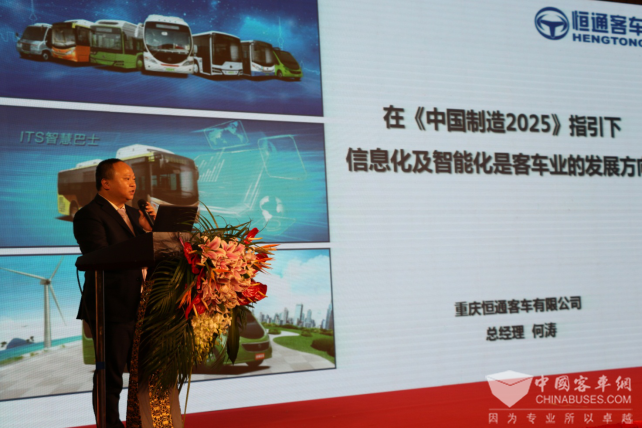 何涛表示,《中国制造2025》的总体结构中,两化融合占据了最重要的位置,是我国制造业所要占据的一个制高点。“两化融合”是信息化和工业化的高层次的深度结合,是以信息化带动工业化、以工业化促进信息化,走新型工业化道路,追求可持续发展模式。在这样的时代背景下,加速发展、加快转型、推动跨越,是恒通客车的必然选择。在“互联网+”的思维下,恒通客车在深化自身两化融合方面,将“信息化”和“工业化”的要求结合自身的实际情况,抓住了发展机遇,探索出了一条具有独具特色的道路——恒通ITS巴士,这无疑是两化融合背景下,恒通客车实现企业转型升级的重要手段。恒通客车将“智能制造”作为推进两化融合的目标,并将之视为打造恒通客车新的核心竞争力和未来的主攻方向,并以此作为企业的实现跨越的途径,力争在未来给广大用户带来更多的智能化产品和服务。