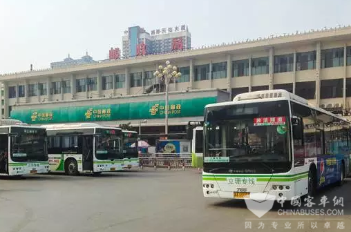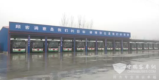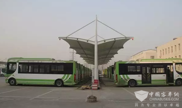 沙河公交总站充电坪里,C80整齐摆放,有序充电。