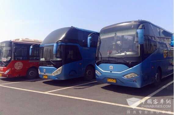 停靠在莱芜长运场站的中通旅游车