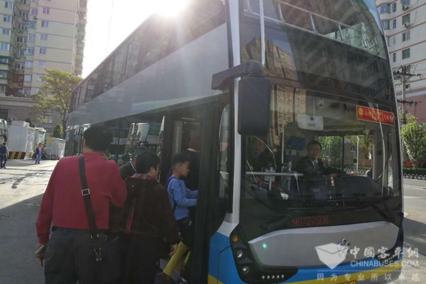 10路线开启运营,市民乘坐银隆纯电动双层客车
