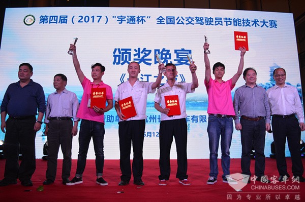 经过两天的比赛,通过评委团们严谨客观的评审,最终评选出全国公交行业四项比赛的第一名,他们分别是获得12米纯电的上海巴士驾驶员姜琛、获得12米柴油手动的武汉公交驾驶员陈功、获得10.5米纯电的济南公交驾驶员杨晨、获得10.5米LNG的济南公交驾驶员王际洲。排在他们后面的优秀驾驶员分别获得了驾驶员节能明星、节能标兵、节能能手等荣誉称号。