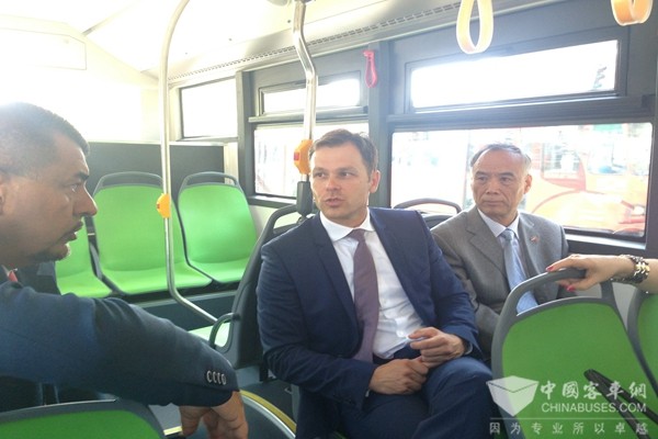中国驻塞尔维亚大使李满长与贝尔格莱德市市长乘坐海格客车