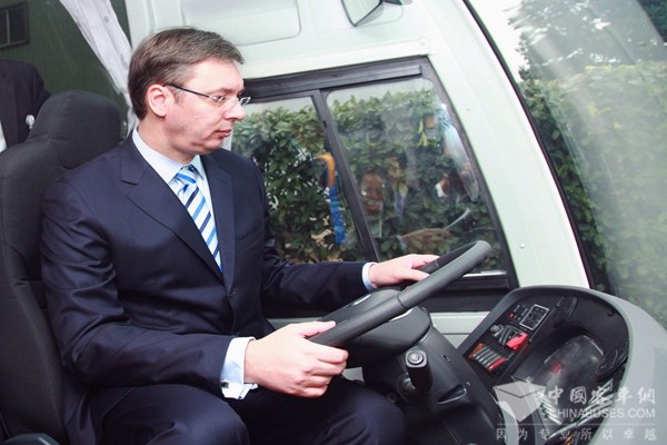 塞尔维亚总理武契奇体验海格客车驾驶区